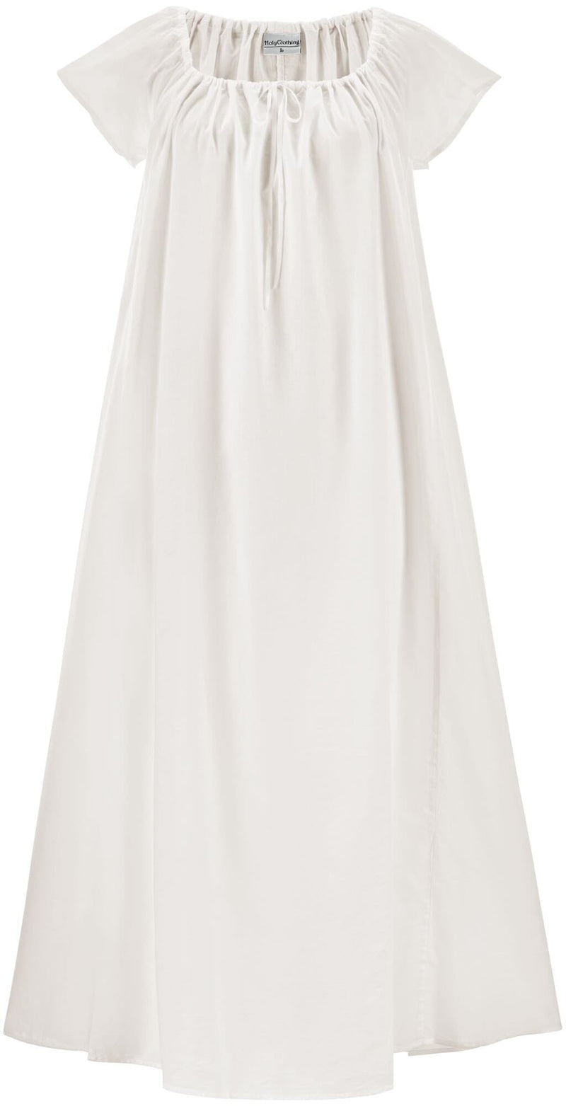 - The drawstring neckline comes to a close in the front of the dress, where you can tie it in a knot or a cute little bow for added character. Can be worn on or off shoulder. We’ve often seen our chemises being worn at overnight LARP events or for Ren Faires where attendees want to feel like they belong to the world setting a little more.